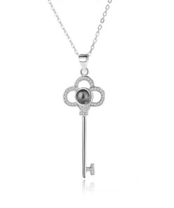 925 Sterling Silver I love you key necklace with discreet customized keepsake image in peephole projection.